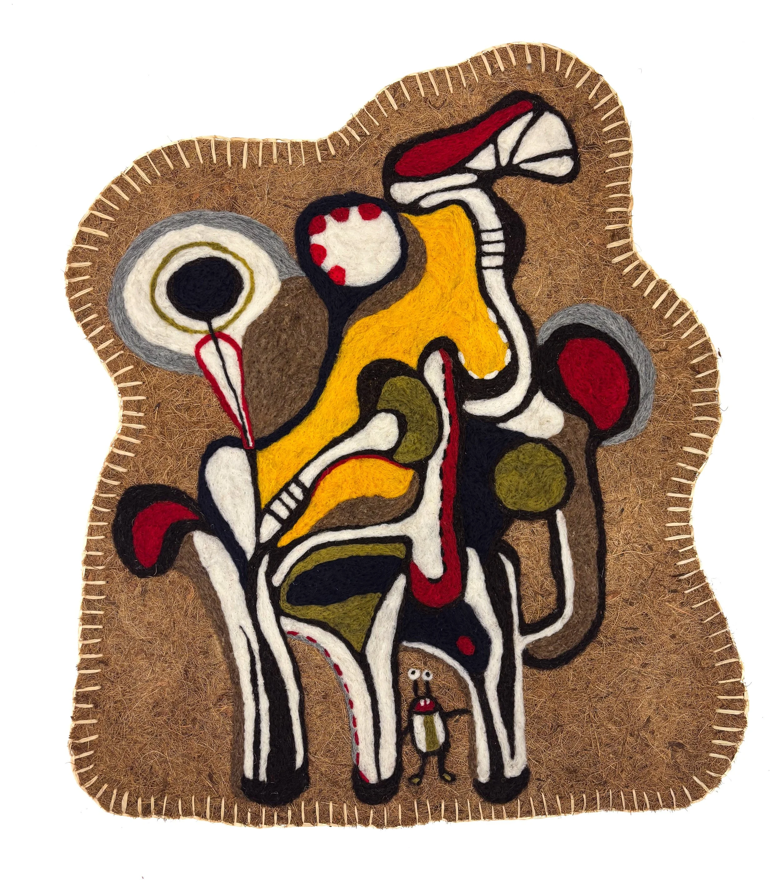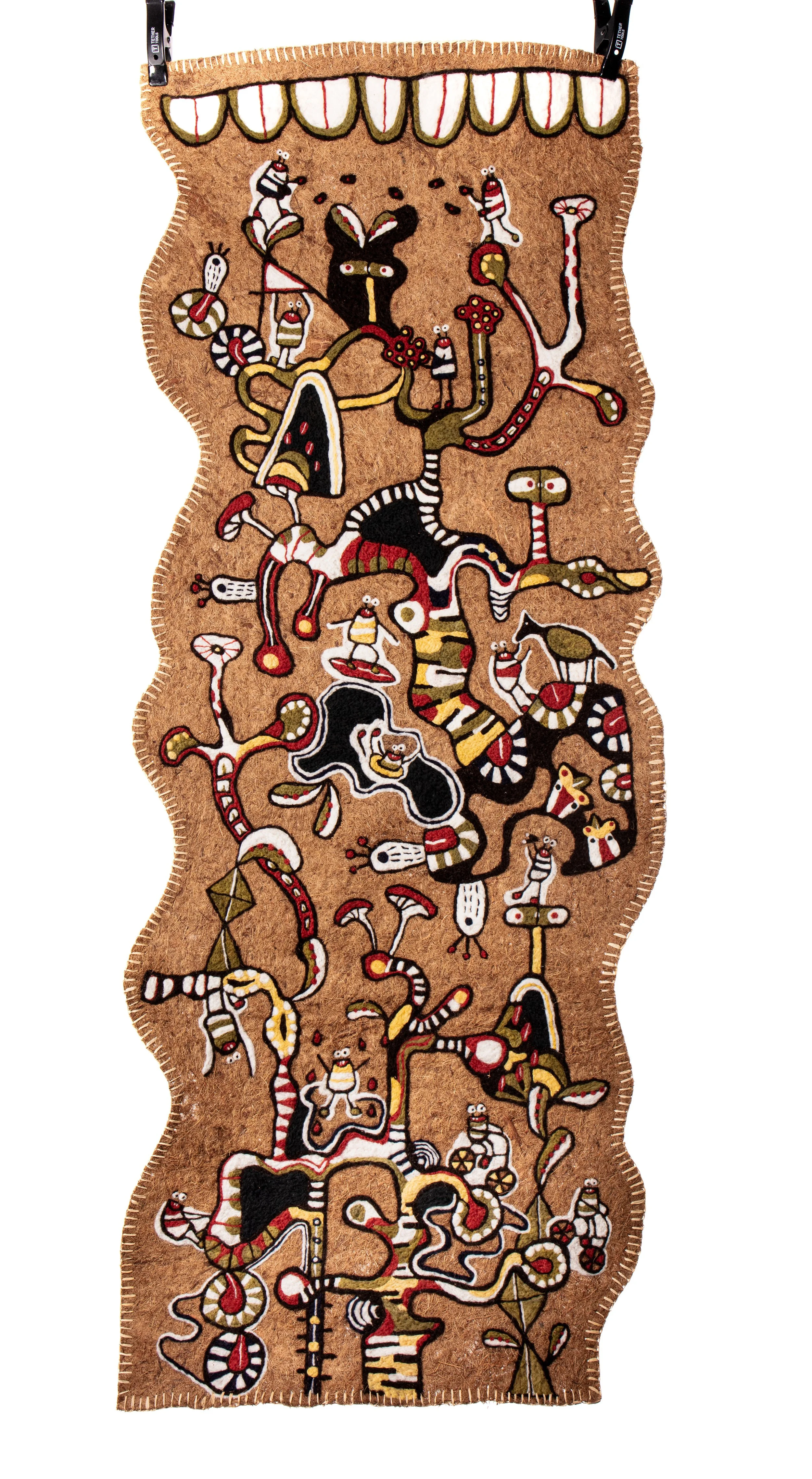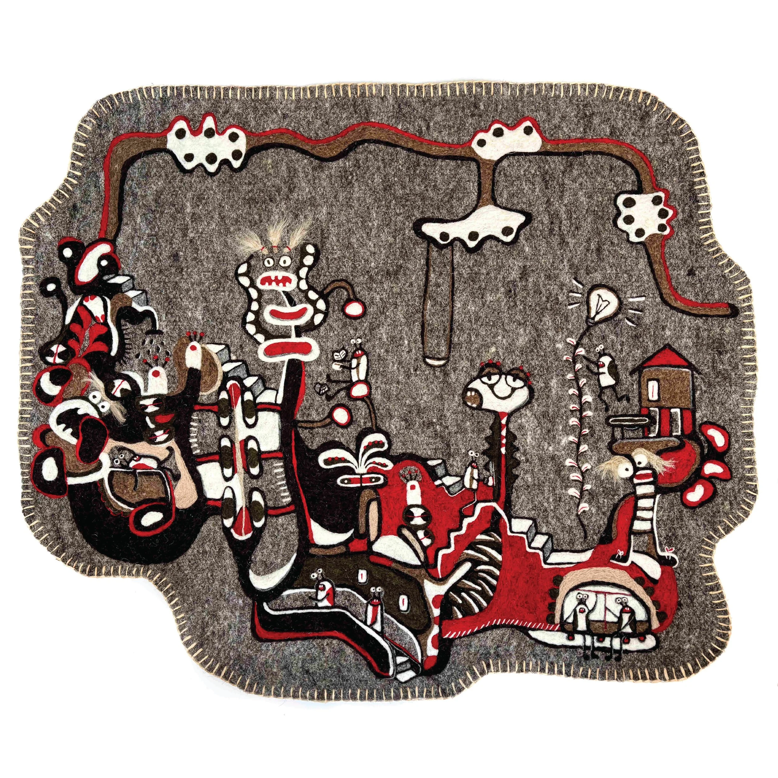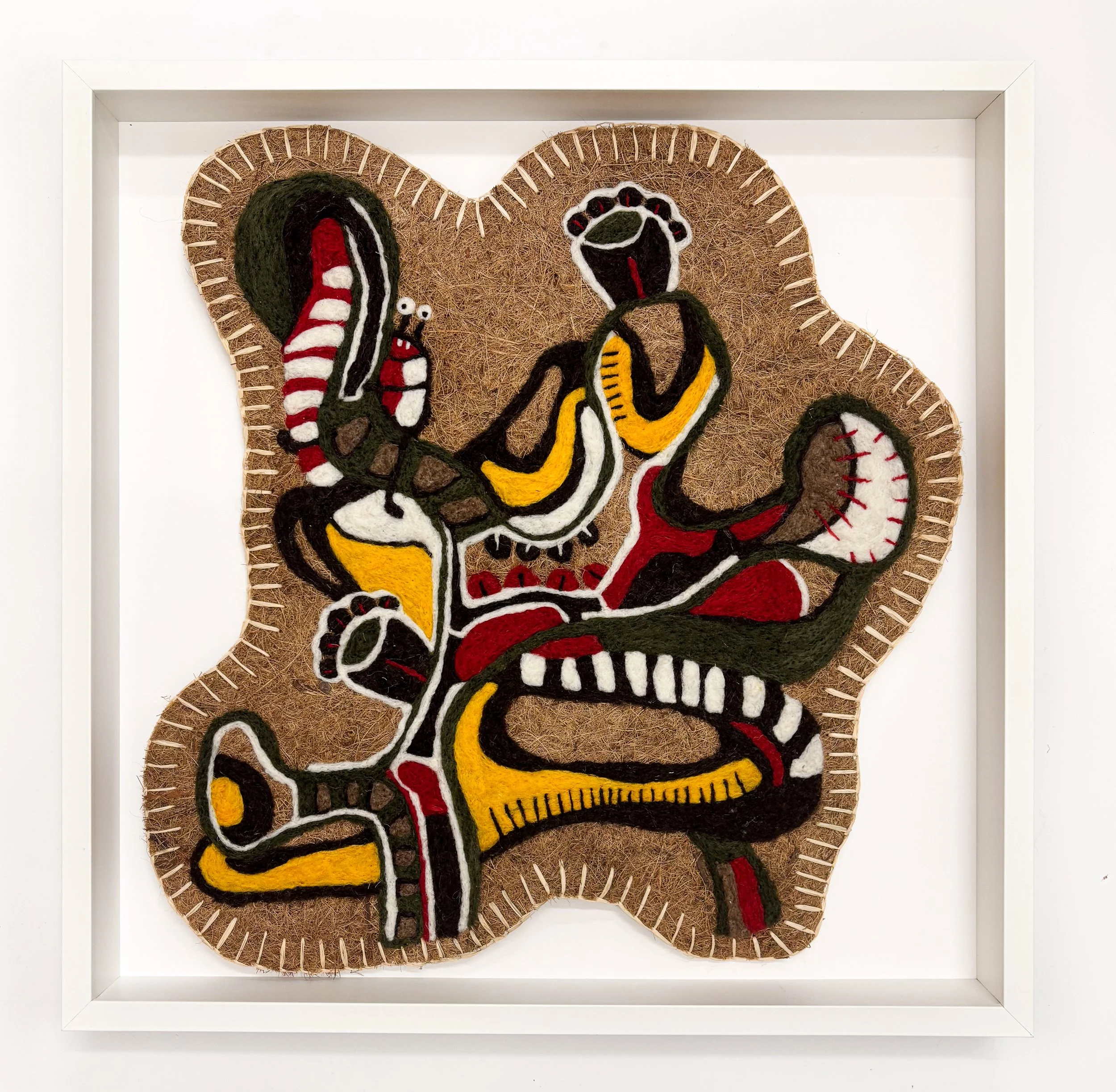 Interconnected Mad World, 2025 Mixed media on wool felt mat h100 x w100 cm - Available