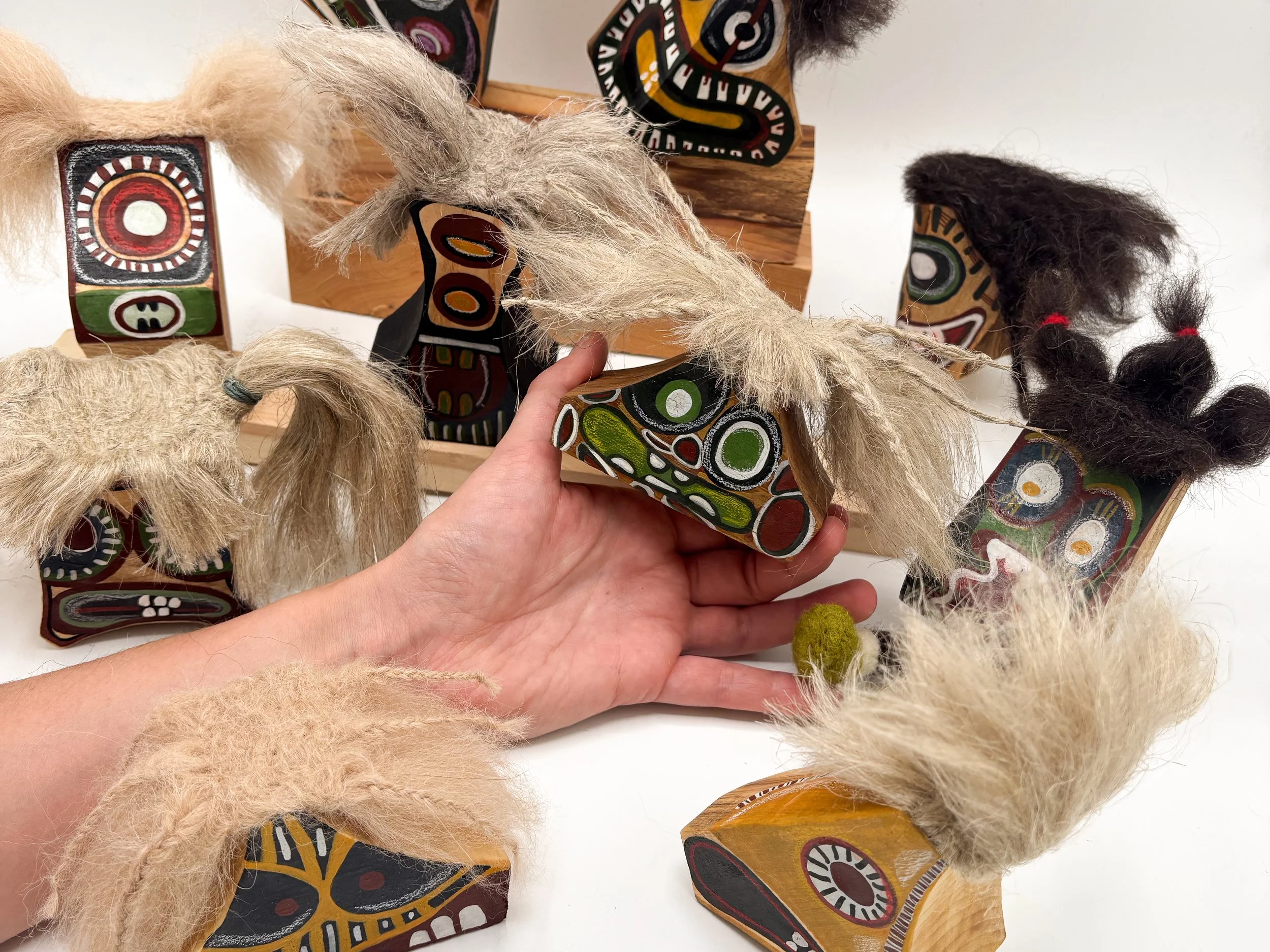Drop 01 #09 'Smilo', Wooden and Fibre Creature Sculpture, 2025 h25 x w20 x d21 cm - Not Available